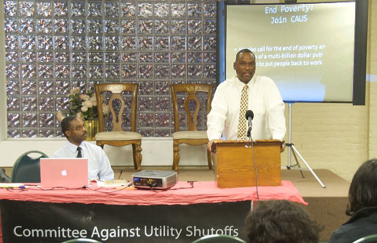 Collier speaking to a westside Detroit CAUS meetingCollier is a founding member of the Committee Against Utility Shutoffs (CAUS) and supports its program calling for the nationalization of the utility companies under public control, with gas and electricity provided as a basic human right, not on a for-profit basis.