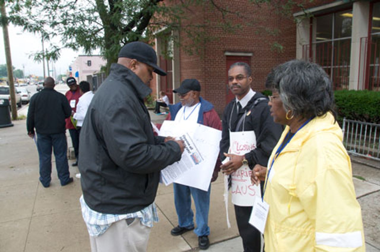 The block club was circulating a petition to keep the library open. Passers-by greeted the demonstration with enthusiasm and many stopped to sign.