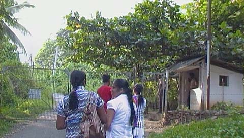 වර්ජනය හා උපවාසයට සහභාගිවී සිටින සිය සැමියන් එනතුරු පතලේ ගේට්ටුව අසල රැස්වී සිටින බිරින්දෑවරුන්