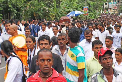 හමුදාවේ වෙඩි තැබීමෙන් මිය ගිය සිසුවාගේ අවමඟුලට දහස් ගනනක් රැස්වෙති
