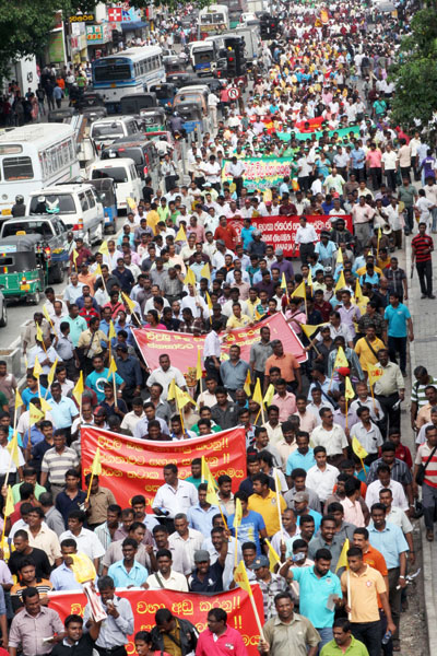 දක්ෂිනාංශික එජාප, ජවිපෙ හා ජෙනරාල් සරත් ෆොන්සේකාගේ ප‍්‍රප උත්සාහ කරන්නේ ජීවනතත්වයන්ට එල්ල කරන ප‍්‍රහාරයන්ට එරෙහිව රාජපක්ෂ ආන්ඩුවට විරුද්ධව වර්ධනය වන කම්කරු පන්තියේ අතෘප්තිය තම ප‍්‍රතිගාමී දේශපාලන අවශ්‍යතාවයන් සඳහා ගසා කැමට ය. සමිති නිලධරයත්, ව්‍යාජ වාම පක්ෂ වන නසසප හා එසප යෙදීගෙන සිටින්නේ කම්කරු පන්තියේ එම විරුද්ධත්වය බොරු විරෝධතාවලට කොටුකර එජාපය අත යටට තල්ලූ කිරීමේ දැනුවත් ව්‍යායාමයක ය.
