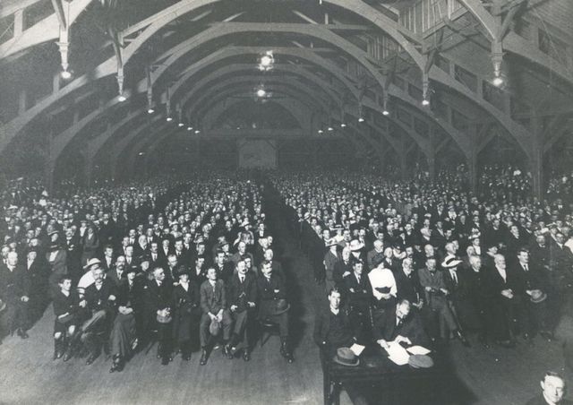 යුද්ධයට බලහත්කාරයෙන් බඳවාගැනීමට සහ ජීවන බර වැඩිවීමට එරෙහිව 1917 ක‍්‍රයිස්ට්චර්ච්හි 2,600ක මහජන රැලිය/ නවසීලන්තයේ ඔටාගෝ විශ්වවිද්‍යාලයේ, හොකෙන් එකතුව වෙතිනි.