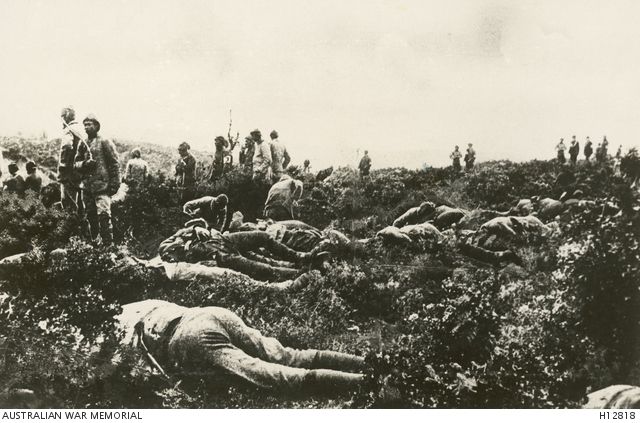 1915 මැයි ගැලිපොලිහිදී මරනයට පත් තුර්කි සහ ඕස්ටේ‍්‍රලියානු සොල්දාදුවන් වලදමා ඇති අයුරු / ඕස්ටේ‍්‍රලියානු යුද ස්මාරක වෙතිනි