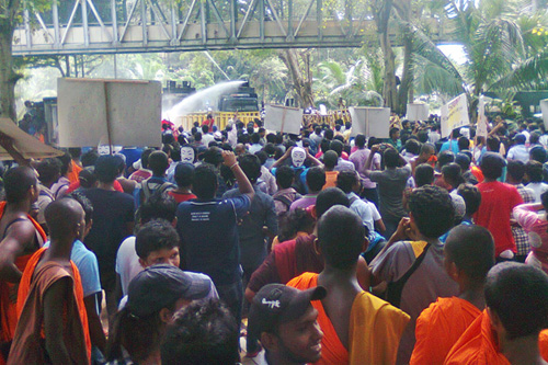 පොලීසිය සිසුන්ට කදුලු ගෑස් හා ජල ප‍්‍රහාරයක් එල්ල කරයි