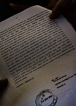 ගීතා බොතේජු මහත්මිය ප්‍රාදේශීය සභා නිලධාරීන්ට නඩු වාර්තාව පෙන්වමින්