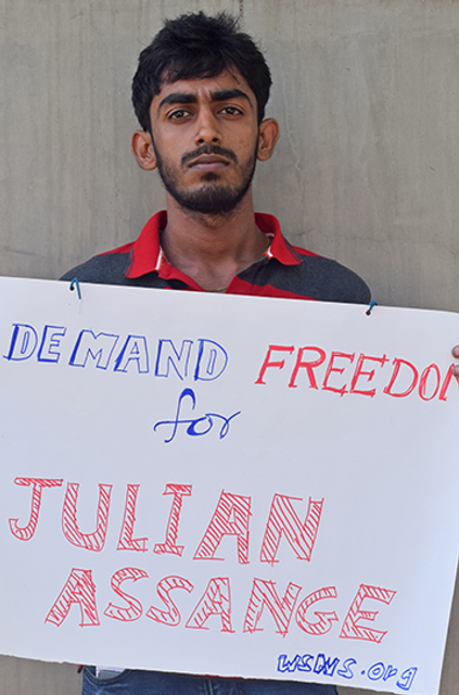 සමාජවිද්‍යාව හදාරන සිව්වන වසරේ සසන්ක මෙසේ පැවසීය. “ජුලියන් අසාන්ජ් නිදහස් කරන ලෙසට සසප ගෙනයන උද්ඝෝෂනයට මම දැඩි සහාය පලකරන්නමි. ඇමරිකානු අධිරාජ්‍යවාදයට අසාන්ජ් වැනි අය අල්ලා ගැනීමට අවශ්‍ය කාරනය, ඔවුන්ගේ යුද අපරාධ හෙලිදරව් වීමෙන් ජනතාව රැඩිකලිකරනය වනු ඇති බවට වන බියයි. ධනපති ආන්ඩුවල ප්‍රජාතන්ත්‍ර විරෝධී වැඩසටහන් හෙලි කිරීමට ඉදිරිපත්වන අනෙක් අය බියගැන්වීම සඳහා අසාන්ජ් දඩයමට ලක් කරයි. ආන්ඩුව ද සමාජ මාධ්‍යයට එරෙහි වාරනය යොදාගන්නා අතර මෙම උද්ඝෝෂනය මෙරට ජනතාවට ද බෙහෙවින් අදාලයි.”