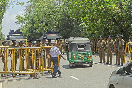 රාජගිරියෙන් අරඹා පාර්ලිමේන්තුව දෙසට ගමන්ගත් පා ගමන, බත්තරමුල්ල පාර්ලිමේන්තු පිවිසුම් මංසන්ධියේදී, පොලිස් මාර්ග බාධක යොදා නතර කෙරුනි. කම්කරුවන් පාර්ලිමේන්තුව දෙසට ගමන් කිරීමට තැත් කලහොත් එය වැලැක්වීම සඳහා ජල විදින යන්ත‍්‍රද සමග සන්නද්ධ පොලිස් භටයන් සිය ගනනක් එහි රඳවා තිබුනි.