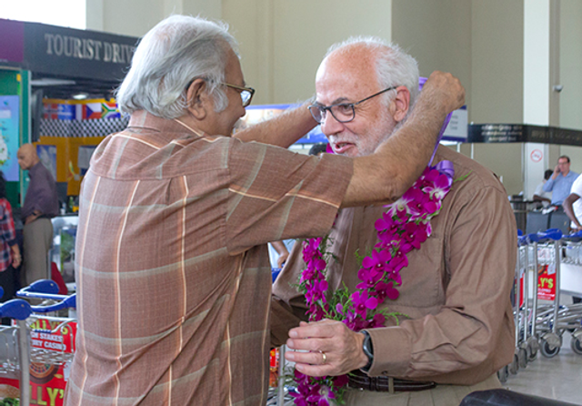 ශ්‍රී ලංකාවට පැමිනි ඩේවිඩ් නෝර්ත් උනුසුම් ලෙස පිලි ගනී