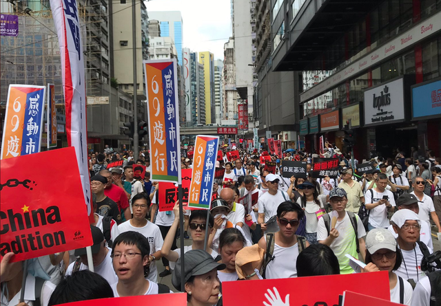 සංවිධායකයින්ට අනුව, මිලියන එකකට වඩා පුද්ගලයෝ (වෙනත් වචනවලින් පවසතොත් හොංකොං සමස්ත ජනගහනයෙන් හත්දෙනෙකුට එක් අයෙක්) ඊයේ විරෝධතාවට සහභාගී වූහ. පුවරු හා බැනර්වල “චීන උදර්පනය එපා” හා “කැරී ලැම් ඉල්ලා අස්වෙනු” යන සටන්පාඨ ඇතුලත් වුනි. ප්‍රධාන විධායක නිලධාරී ලැම් හොංකොං හි ප්‍රධාන නිලධාරියා වන අතර ඒ අනුව නීති සම්පාදනය සඳහා වග කිව යුතු ය.