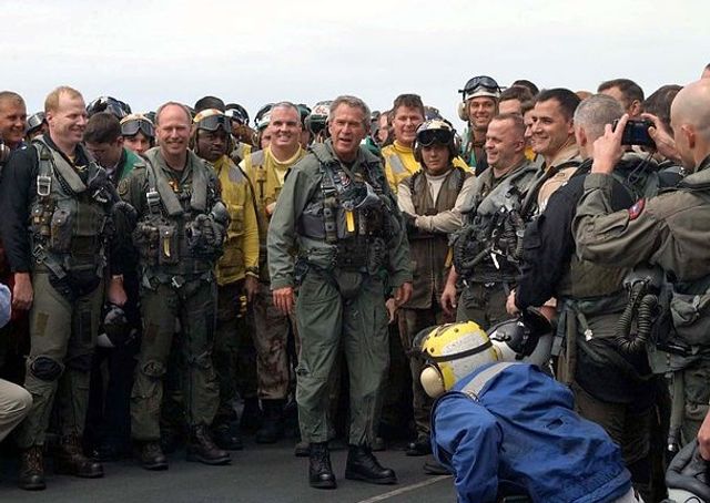 ජනාධිපති ජෝර්ජ් ඩබ්ලිව්. බුෂ් යූඑස්එස් ඒබ්‍රහම් ලින්කන් යුද නෞකාවේ