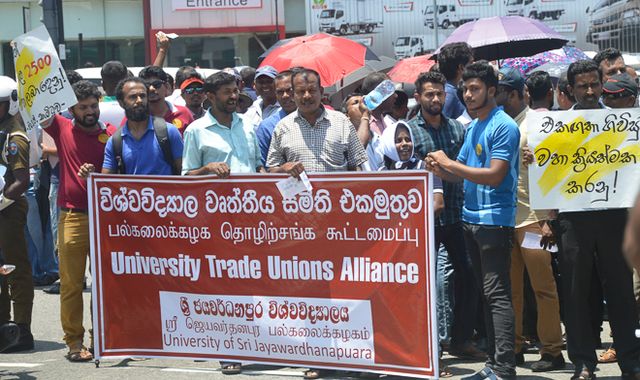 විශ්ව විද්යාල කම්කරුවන් දහස් ගනනක් කොලඹ දී විරෝධතා දක්වති